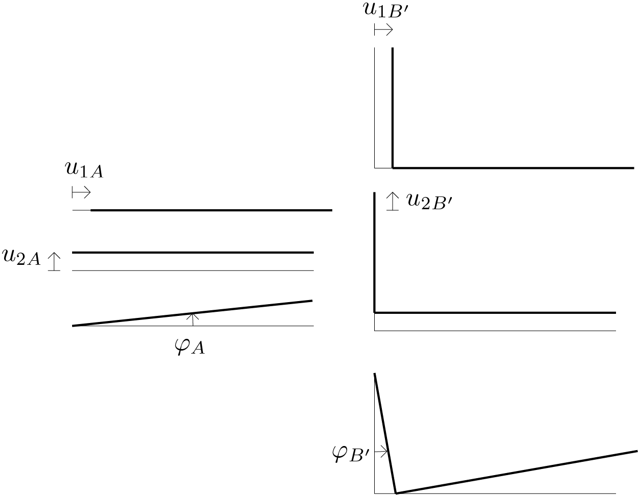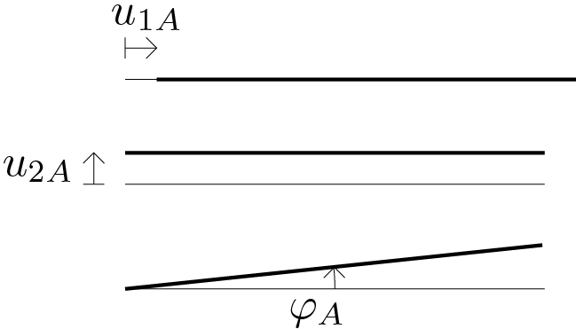 The solution of the linear system provides the new values assumed by the Lagrangian parameters \(u_{1A} \text{,}\)\(u_{2A} \) and \(\varphi_{A} \text{.}\)