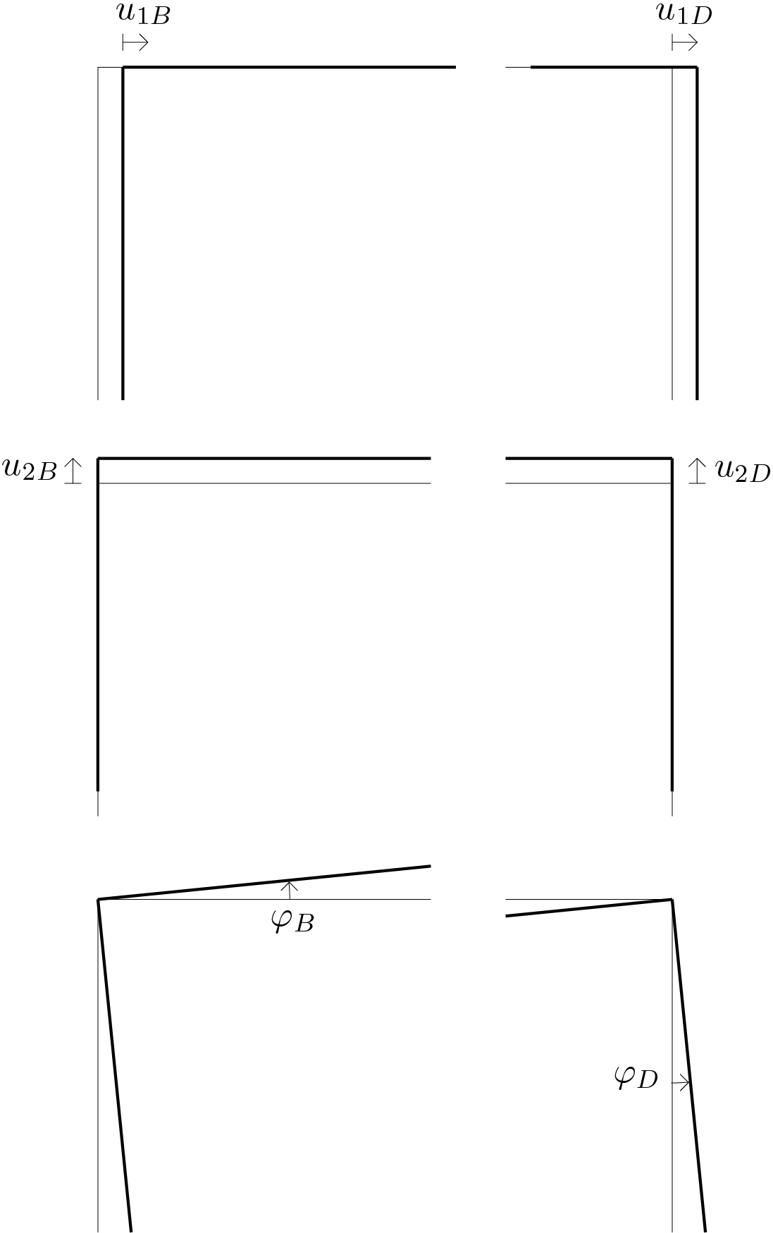 The graphical representation of the displacement field is obtained by evaluating the displacement of the end points of the straight parts of the beams, obtaining what follows.