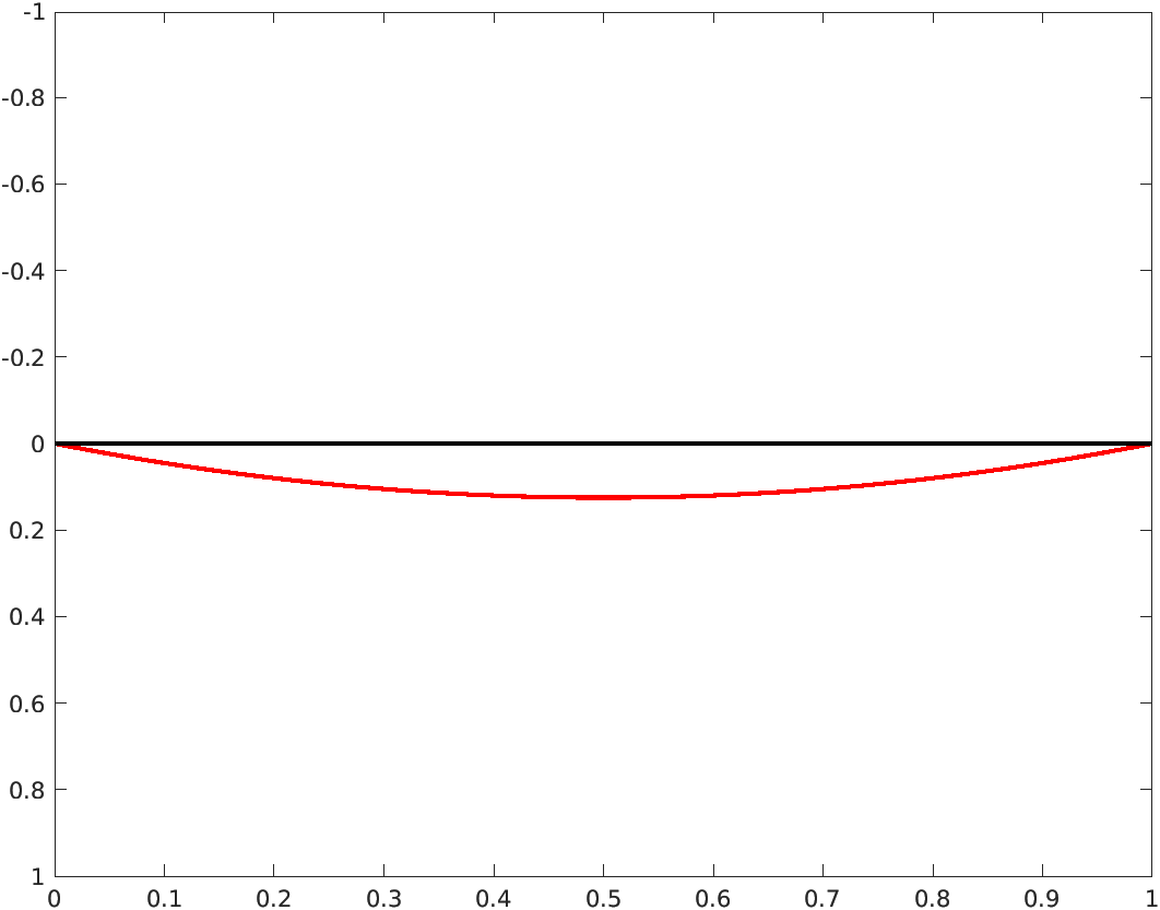 Compared to the previous cases, the current case is different because the force concentrated in the middle determines a discontinuity of the shear \(T (x) \) and therefore, being \(dM / dx = T \text{,}\) also a discontinuity of the derivative of the bending moment. Therefore the general integrals (5.8.13), (5.8.14) and (5.8.15) are not directly applicable to whole beam \(AB \) but they must be applied separately to the \(AC \) and \(CB \) beam portions. In this way, two descriptions of \(T (x) \) and \(M (x) \) are obtained, one description valid for the \(AC \) portion and the other one valid for the \(CB \) portion.