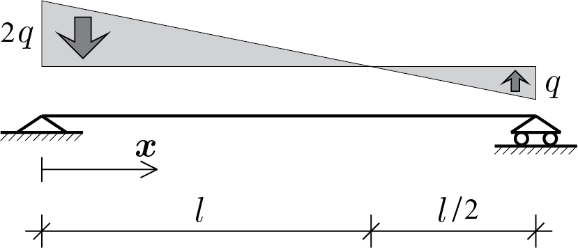 Calculate the elastic solution using the bent beam model. To this end, assume the Young’s modulus beam equal to the generic value \(E \) and section moment of inertia equal to \(J \text{.}\)