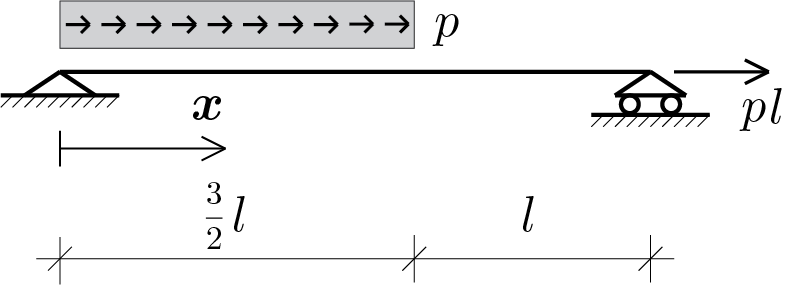 Once the solution has been obtained, construct a graphical representation of the axial force \(\func{N}{x} \text{.}\)