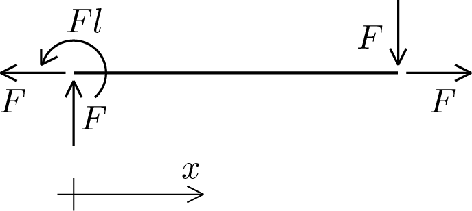 The integration of the equilibrium differential equations gives the following general integrals valid on portions of beam along which the generalized section forces are analytic in the variable \(x\text{:}\)