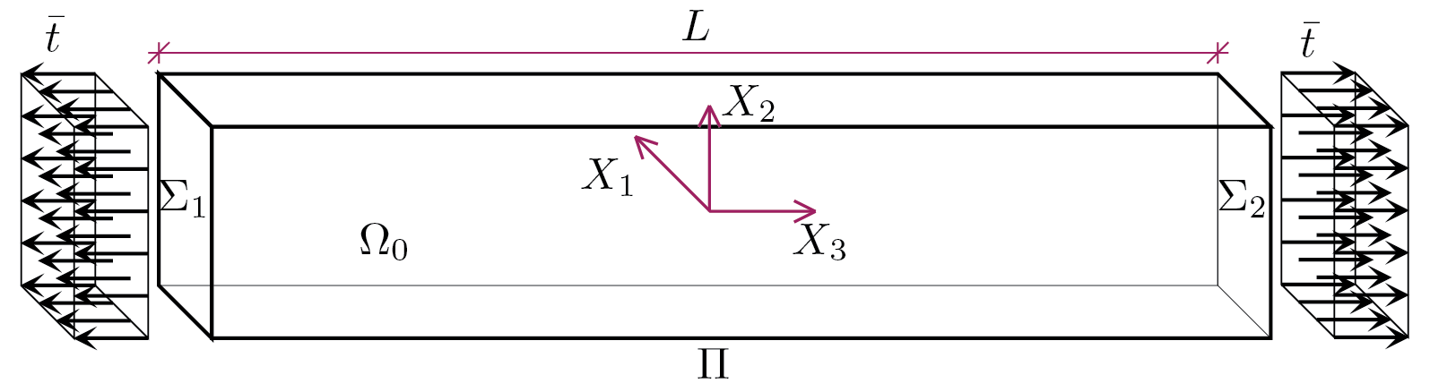 La descrizione geometrica appena data riguarda solo la configurazione di riferimento \(\body_0\) a cui tipicamente si riferisce la descrizione cinematica dei corpi così come presentato nel Chapter 1. La scrittura delle equazioni equilibrio, si veda al riguardo il Chapter 2, viene invece effettuta rispetto alla configurazione corrente \(\body\text{.}\) La seguente discussione quindi dovrebbe tenere conto di tale situazione richiedendo anche l’introduzione di ulteriori concetti che esulano dalla presente trattazione introduttiva di Meccanica dei solidi.