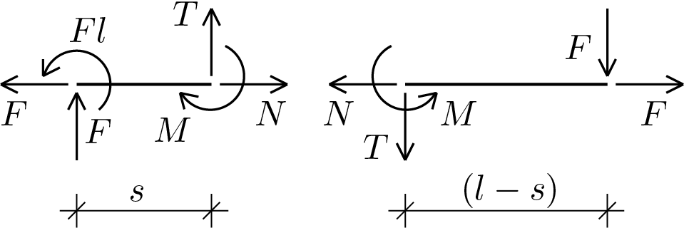 Lo stesso risultato si otterrebbe applicando le equazioni di equilibrio al tratto di lunghezza \((l-s)\text{.}\)